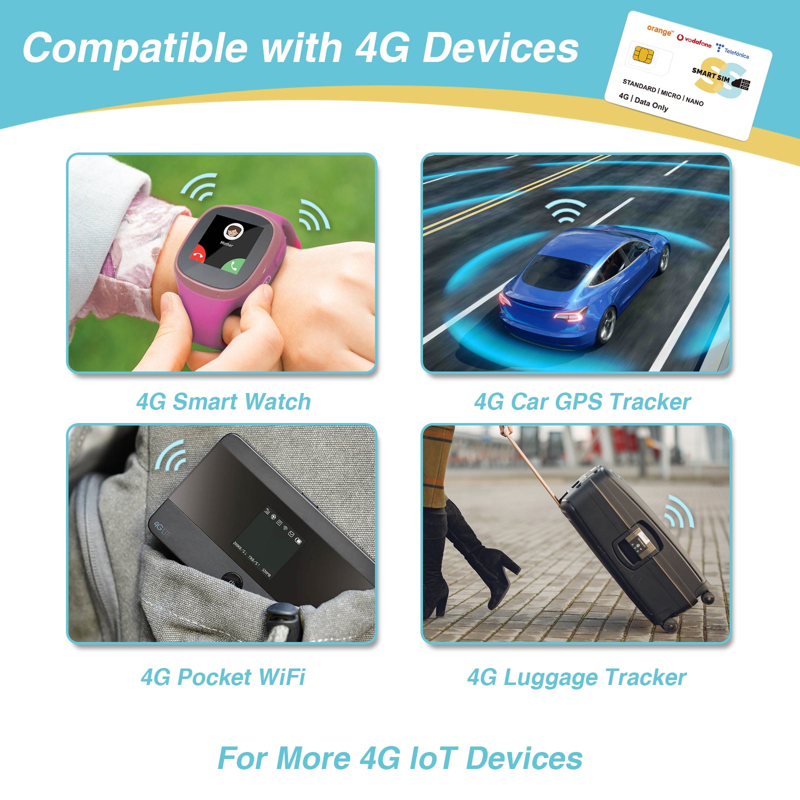 - Fit Unlocked 4G loT Devices: Our SIM card can be used for a lot of 4G devices, such as solar security camera, WiFi router, mobile hotspot, pocket WiFi, hunting camera, walkie talkie, 4G bird feeder and GPS pet/car tracker, etc.
