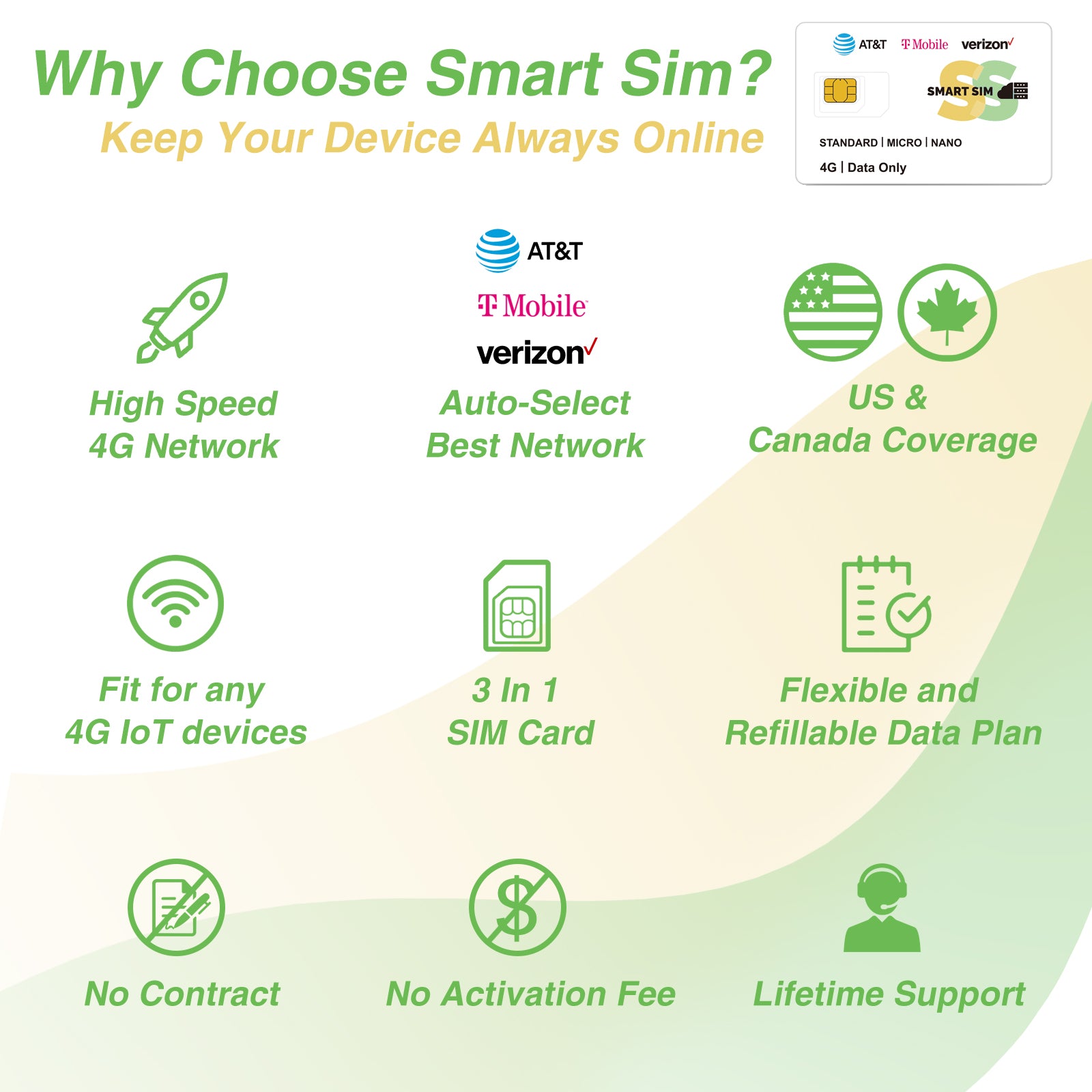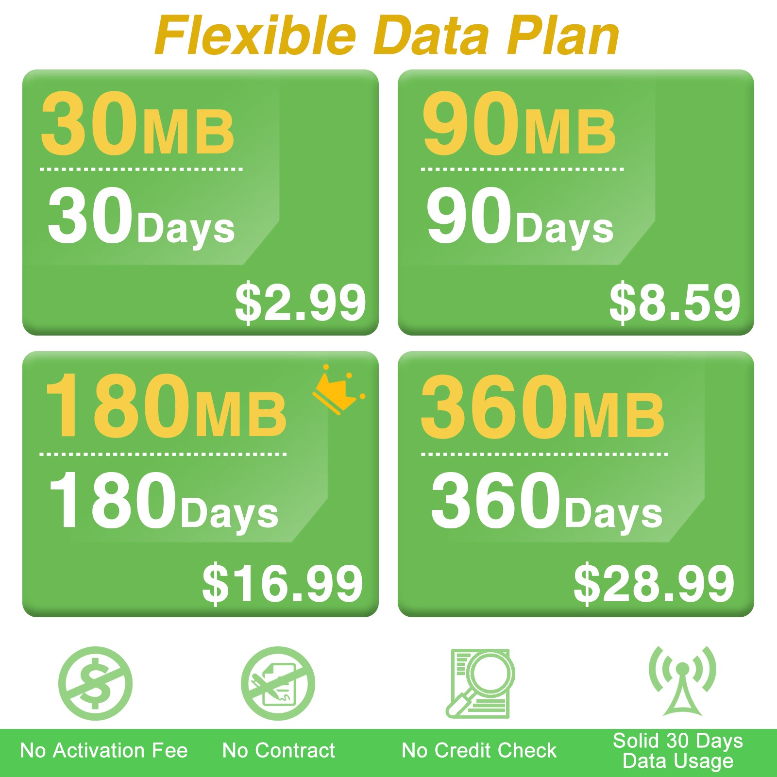 - Data Plan Details: SmartSIM card is data Only, do not support talk & text service(no phone number,a new card with a service plan, not a data refill, valid from first use